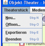 Über das MenüTheaterstück können Sie neue Theaterstücke erzeugen, existierende Theaterstücke öffnen sowie die Bearbeitung des angezeigten Objekt-Theater-Theaterstücks beenden (siehe Abbildung 4.2).