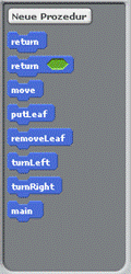 Achtung: Beim Erstellen eines neuen Scratch-Kara-Programms geht der aktuelle Inhalt des Editor-Bereichs verloren! Sie müssen ihn also gegebenenfalls vorher in einer Datei abspeichern.