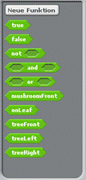 Die Steuerungs- und auch bestimmte Anweisungsblöcke enthalten grüne Platzhalter. Hier können Boolesche-Ausdruck-Blöcke angedockt werden.