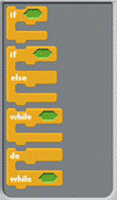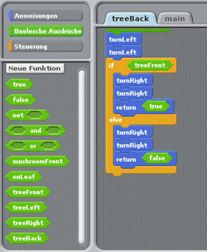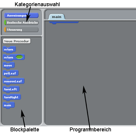 drei Buttons „Anweisungen“, „Boolesche Ausdrücke“ und „Steuerung“. Durch Mausklick