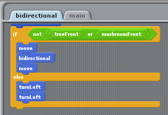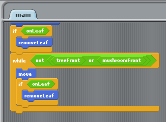 Während der Ausführung eines Scratch-Kara-Programms ist es durchaus noch möglich, das Territorium umzugestalten, also bspw. neue Pilze und Kleeblätter zu platzieren.