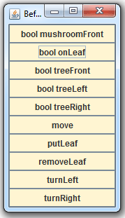 · Testbefehle: Mit Hilfe der fünf Testbefehle ist es möglich, bestimmte Wahrheitswerte, die sich auf den aktuellen Zustand des Territoriums beziehen, abzufragen. Dabei gibt es genau zwei Wahrheitswerte (auch als boolesche Werte bezeichnet), nämlich wahr (bzw. true) und falsch (bzw. false).
