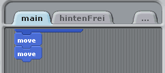 Durch Anklicken der beiden Buttons „Neue Prozedur“ bzw. „Neue Funktion“ lassen sich neue Prozeduren bzw. Funktionen definieren. Es erscheint jeweils ein entsprechender Tab-Button oberhalb des Programmbereichs. Durch Anklicken der Tab-Buttons kann man zwischen einzelnen Prozeduren bzw. Funktionen hin und her wechseln.