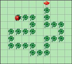 Aufgabe (von http://www.gierhardt.de/informatik/info11/javakara.html): Kara spielt Pacman: Er steht auf dem ersten Kleeblatt einer langen Spur