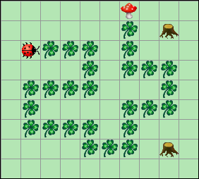|   | Steuern Sie einen virtuellen Marienkäfer durch ein virtuelles Territorium und lassen Sie ihn Kleeblätter aufnehmen und ablegen.