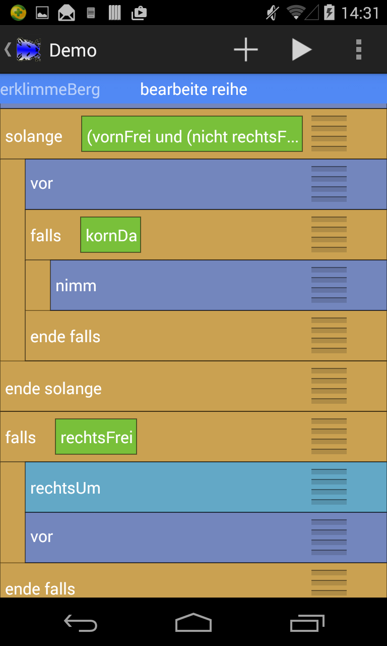 Als Vorbild für den generellen Aufbau einer solchen App diente die App Pocket Code
